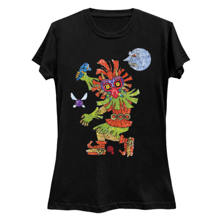Aztec Skull Kid Ladies Slim Fit Black T-Shirt