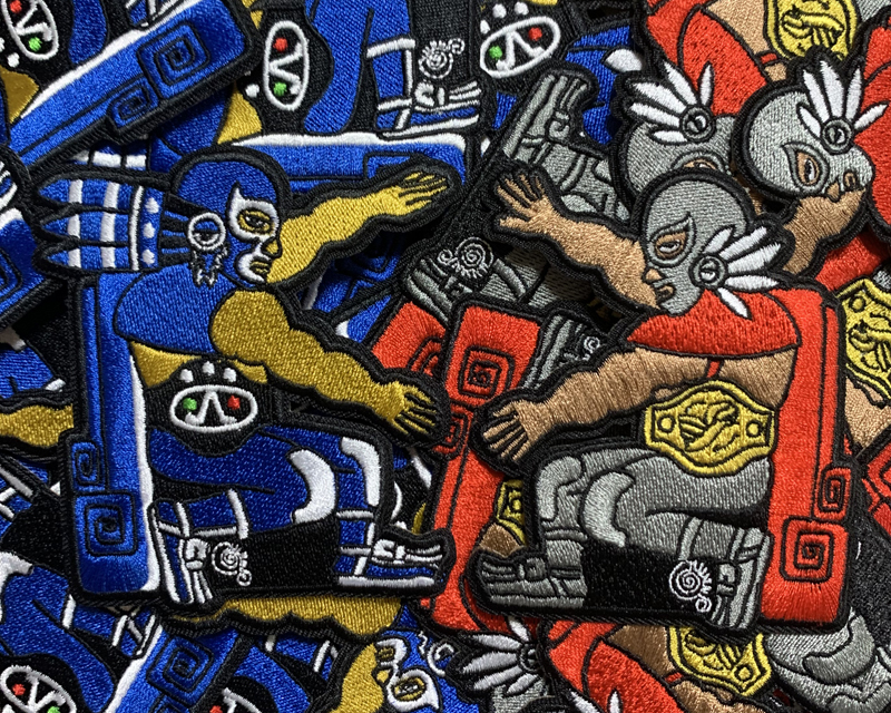 Two embroidered patches. One of BlueDemon and one of ElSanto!
