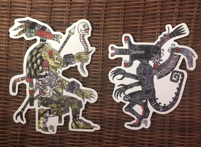 Aztec Alien and Aztec Predator stickers! Stickers measure approximately 4" x 5" each •Great print •2-4 years weatherproof