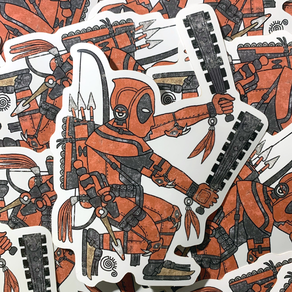 Merc with a Macuahuitl sticker! Sticker measures approximately 4" x 5.2" •Great print •Weatherproof