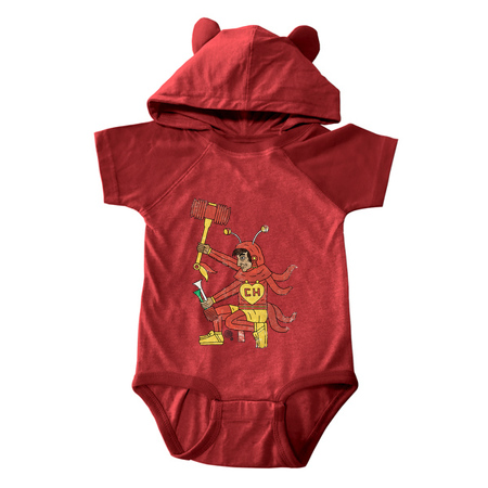 Aztec Chapulin Red Baby Snapsuit with Hood and Ears