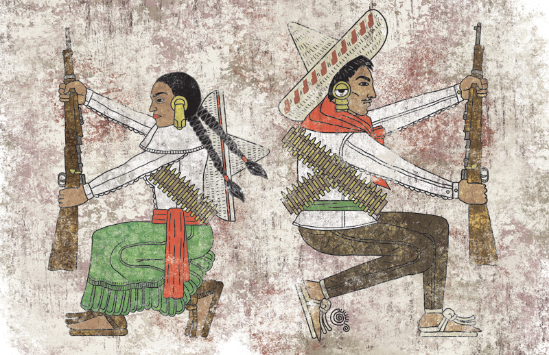 Adelita y Revolucionario Art Print! Azteca Pop Mashup.
