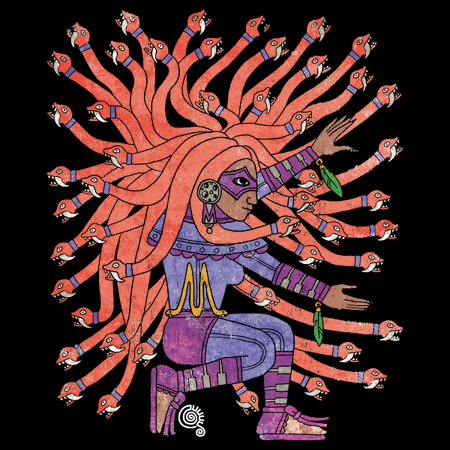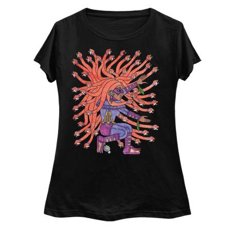 Aztec Medusa Ladies Curvy Black T-Shirt