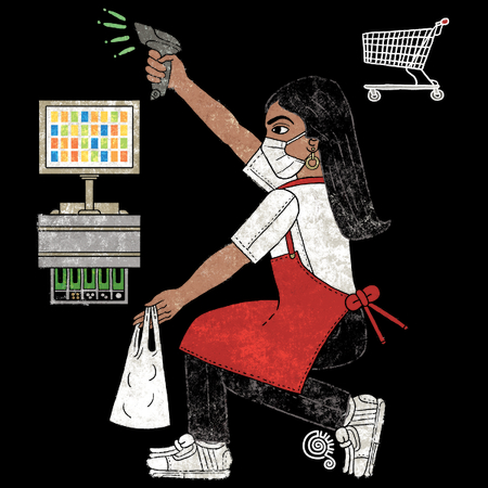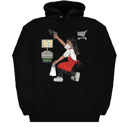 Frontline Warriors Grocery Worker FEMALE Black Hoodie FRONT PRINT