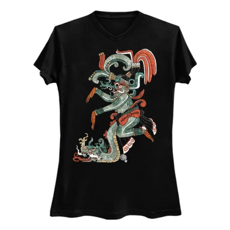 K'awiil (Bolon Tzacab) V-Neck Ladies Slim Fit Black T-Shirt!