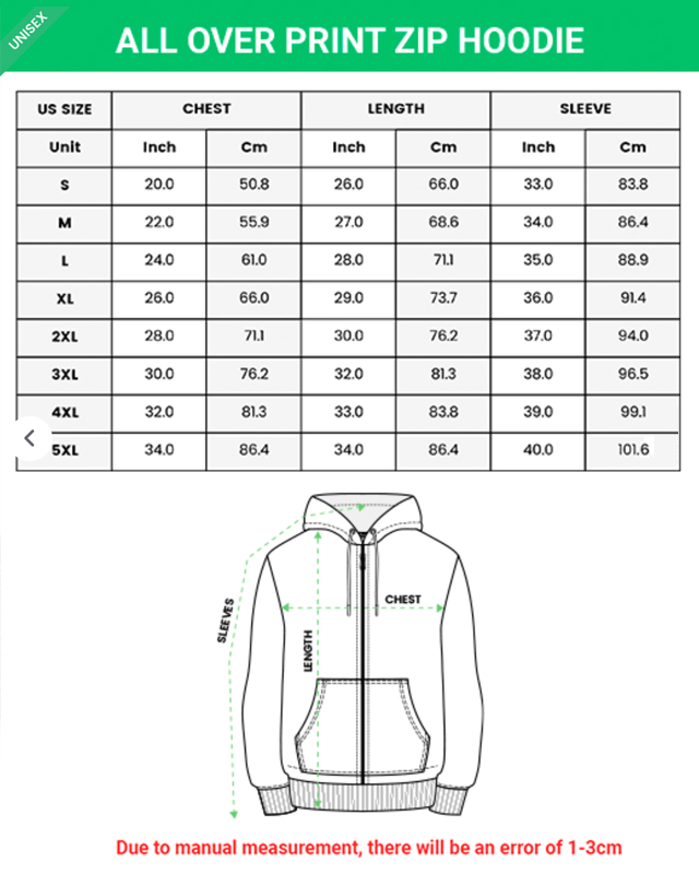 This All-Over Print Unisex Zip-Hoodie has a relaxed fit and super soft fabric thanks to the unique cotton and polyester blend. Available in sizes S-5X!
