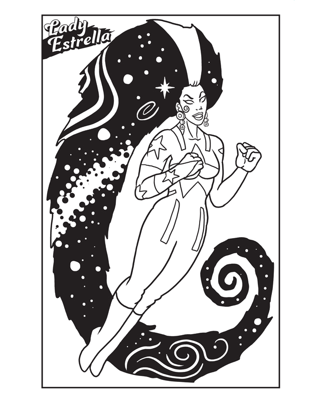 Color front and back covers with 28 pages in color! (coloring book and drawing challenge pages are b/w). If ordered online each book comes bagged, boarded and signed by me.